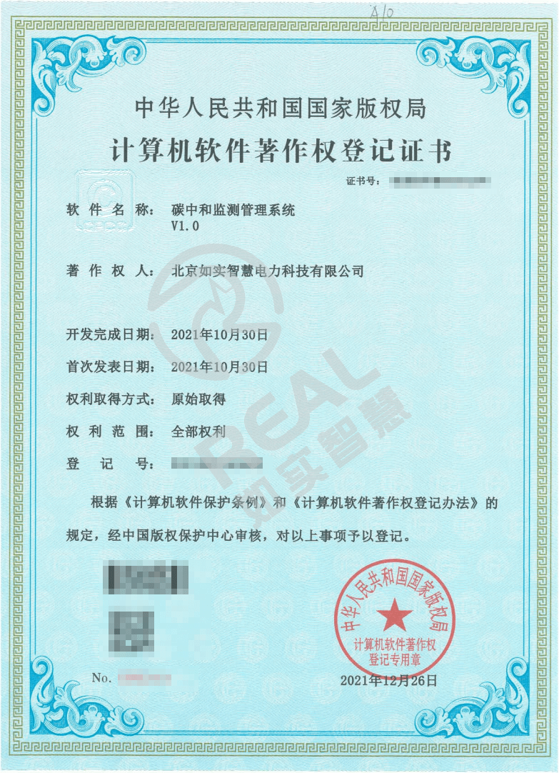 公司拥有22项国家专利及多个软件著作权,设备获得CPA国家计量器具型式批准证书;公司平台通过ISO27001认证,碳资产管理软件获得南德意志授予的评估声明。分布式光伏碳资产业务已通过工信部电子第五研究所和第三方机构认可,实现分布式光伏项目减排效益数字化核证,满足主管部门的碳减排核查。